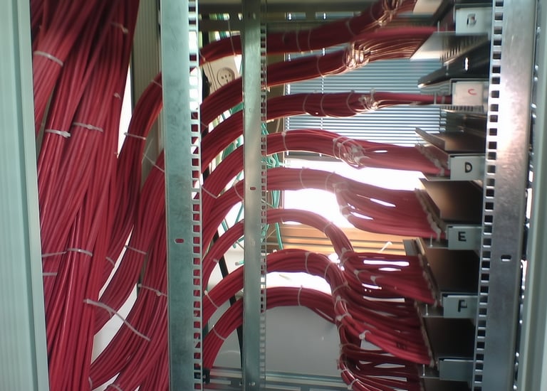 Color-Coded Systems: Red cables for power, white/gray for data communications