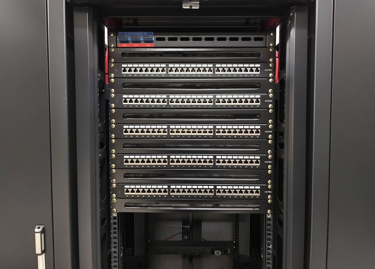 Patch Panel Organization: Professional patch panel configuration with proper labeling