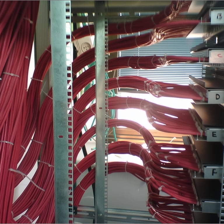 Technology: Professional cable routing and organization in server room environments Coverage: Systematic cable management ensuring clean, maintainable infrastructure with proper documentation and labeling for long-term operational efficiency.